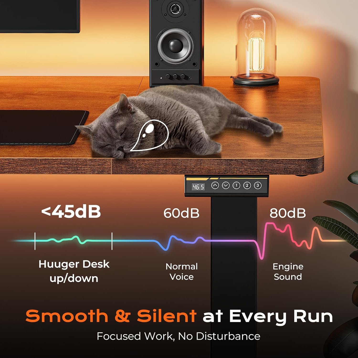 The Huuger 55×28 Electric Standing Desk offers a spacious and adjustable workspace designed for comfort and efficiency. Featuring a sturdy motorized lift system with three programmable height presets, it smoothly adjusts from 28.3″ to 46.5″ to suit your working style. The desk includes dual hooks and built-in cable management for a clean, organized setup. Perfect for home offices, this modern desk enhances productivity and promotes a healthier work routine.
