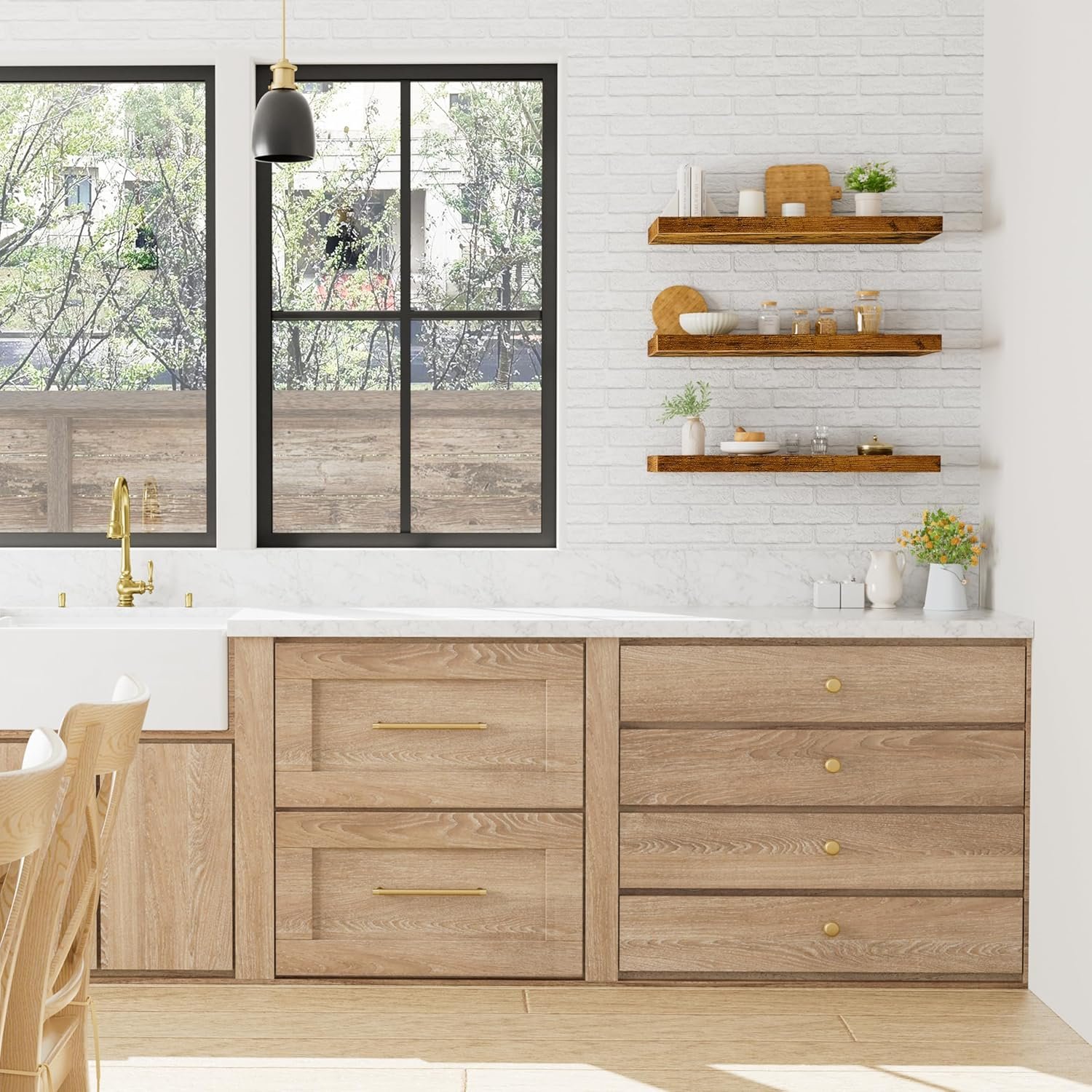 The QEEIG 10″ Deep Floating Shelves provide a stylish and functional way to organize and display items in any room. Each shelf measures 10″ deep × 23.6″ wide × 1.5″ high, offering ample space for books, plants, or décor. Made from FSC-certified wood with durable steel brackets, they support up to 22 lbs. The invisible bracket design creates a clean, modern look, perfect for bathrooms, kitchens, bedrooms, or living rooms, while easy assembly ensures convenience and practicality.