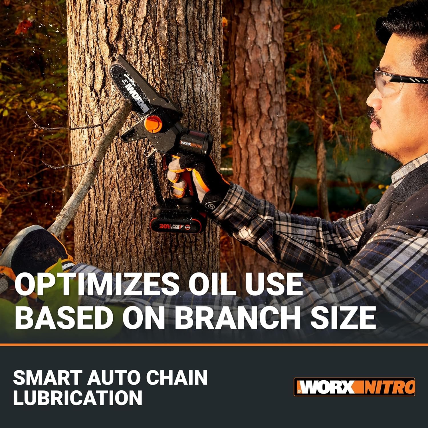 The Worx Nitro 20V 5" Cordless Brushless Pruning Saw (WG325) is a compact, powerful tool designed for precise pruning and trimming. Its high-efficiency brushless motor provides longer runtime, more power, and extended durability. With a 5-inch bar, 33 ft/s cutting speed, and tool-less chain adjustments, it easily handles branches and limbs. Lightweight and ergonomic, it ensures comfortable use, while onboard chain lubrication and safety guards enhance performance and protection. Compatible with the Worx Power Share battery platform for versatile outdoor tasks.